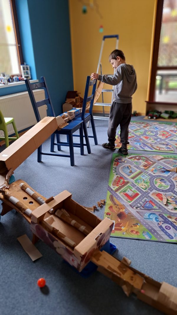 - Wieder daheim, bauten unsere Kinder gleich eine Murmelbahn nach.