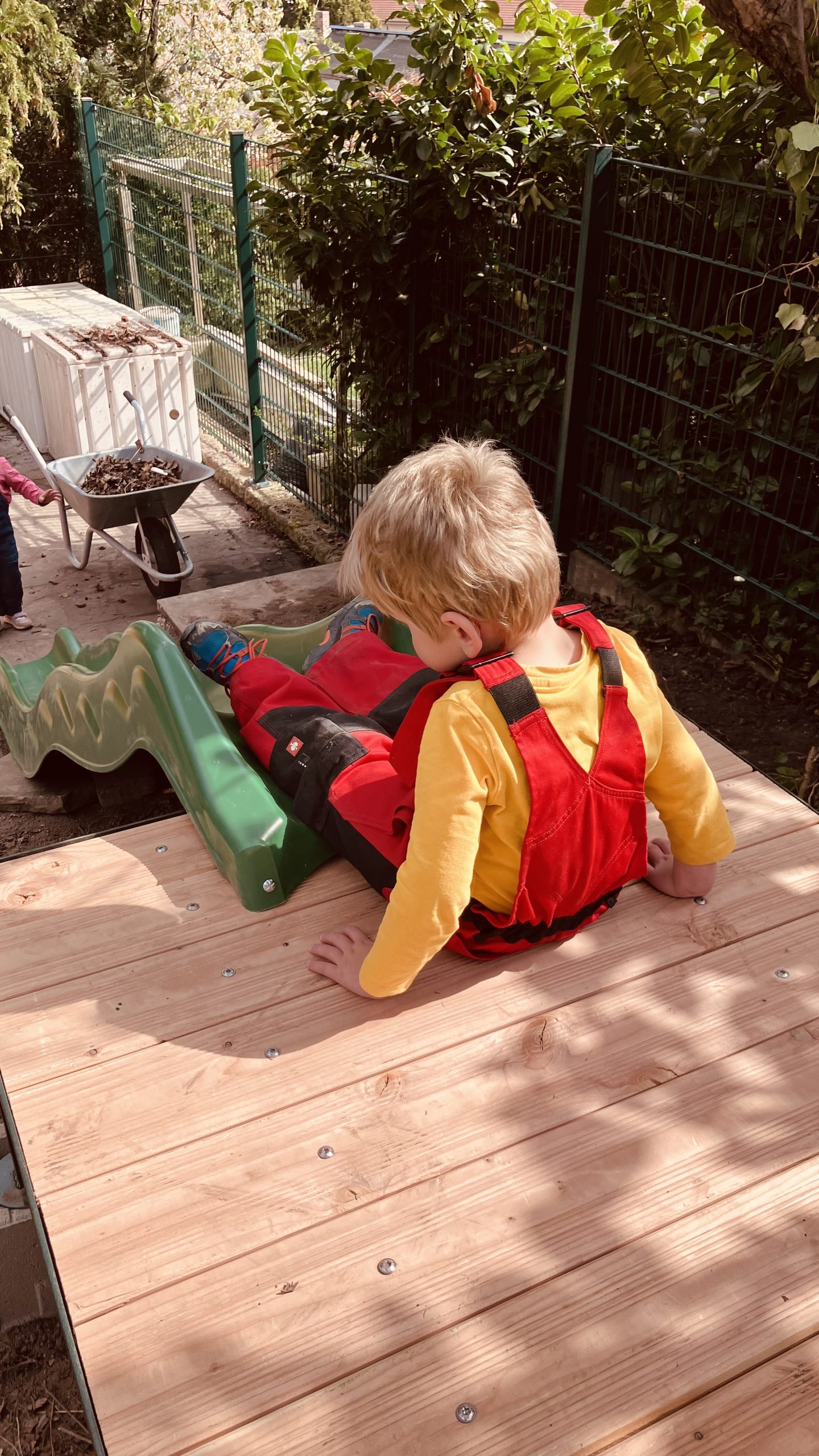 Schritt für Schritt entstand so eine neue Spielfläche – und kaum war die Rutsche fertig, wurde sie auch schon mit großer Begeisterung ausprobiert.
